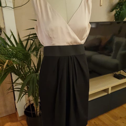 Pen kjole, hvit med mønster i sølv.
