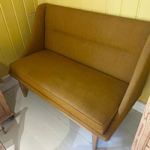 Selger en flott Riviera Maison spisesofa. Den selges billig da den har noen små avvik. Løsnet litt i sømmen på ene siden, samt noen flekker. Ikke forsøkt å ta det bort. Det har ikke vært sjenerende for oss. Selges derfor som den er. Kom gjerne på befaring.