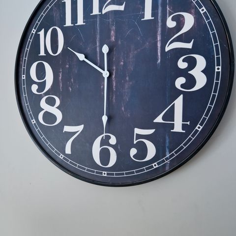 Dekorativ klokke til vegg fra FANCY. Diameter=102 cm. Batteriholderen på baksiden må byttes.
