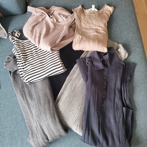 Kun den blå og hvite stripete er godt brukt, de andre lite.