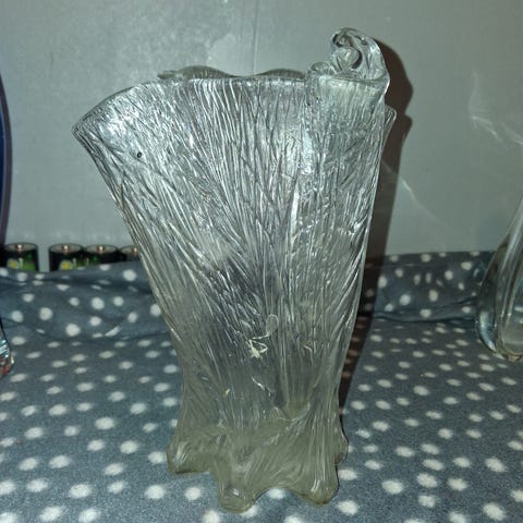 Glassvase med luftbobler små luftbobler er innkapslet i glasset. Range og blå striper.