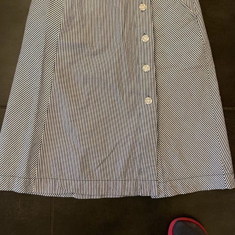 Nydelig sommerskjlrt fra Mexx str 38, marint preg. Folder og lommer foran. Meget pen på.