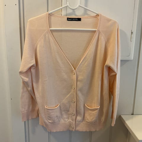 Flott cardigan. Ann Taylor Factory store. Str. medium. Butter yellow farge. 75% silk, 25% cotton. Veldig lite brukt.