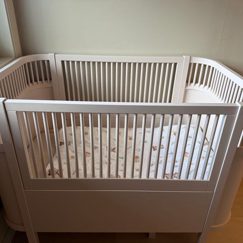 Sengen er knapt brukt her. Følger med madrass, ( som kostet rundt 2000,-)