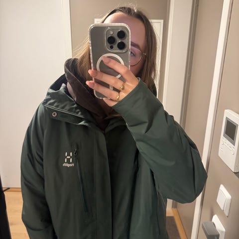 Kjøpt for 2 år siden. Kun brukt et fåtall ganger, men blir dessverre for stor nå. Ønsket en romslig modell og det er den. Utrolig allsidig og bra jakke. Godt med lommer og god hette.