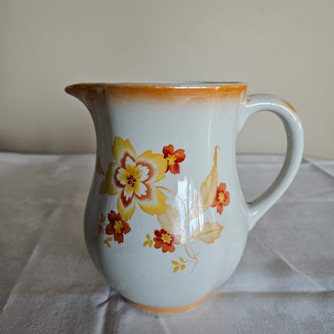 Gammel porselens mugge med brun rose