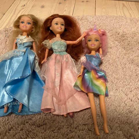 4 Barbiedukker. 3 x Mattel og 1 Disney fra Simba. 2 solgt.