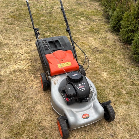 Selger min gressklipper. Den start å går som den skal. Driften fungerer dessverre ikke. Tok en service på slutten av sesongen. Er slipt kniv bladet på den.