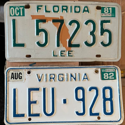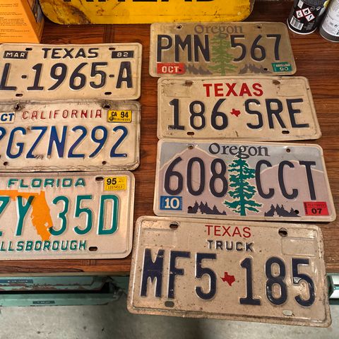 Fin serie av 7 stk. original bilskilt fra Wyoming USA 1967-73. Skilt fra 1967 er solgt. Skiltene er 30x15cm. Pris kr. 300 pr.stk.