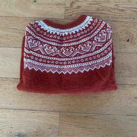 Strikket genser med snøløv mønster