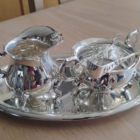 Stilreine og fine dessertskeier i merke Aase. Lengde 15, 1 cm, 830 sølv. Rettleiande pris i butikk er pr stk kr 2520. Eg sel for kr 790 pr stk, eller kr 4000 for alle seks skeiene.