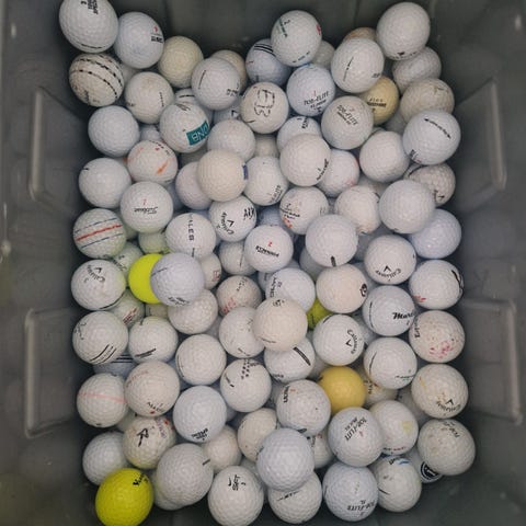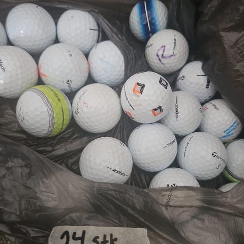 Har stort utvalg på lager av det meste. Ballene er vasket og sortert etter fabrikat og kvalitet. Alle ballene er fine - de dårlige er kastet.