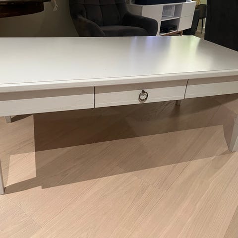 Solid og fint salongbord selges. Har blitt malt hvitt tidligere. Har en del bruksmerker, men kan fint males igjen.