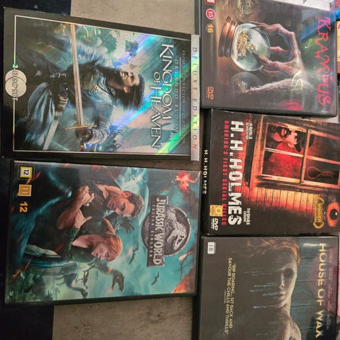 Pakke med 5 DVD-filmer bestående av Stardust, Natt på Museét, På Eventyr med Tin Tin - Enhjørningens hemmelighet, Vacation og Avatar.