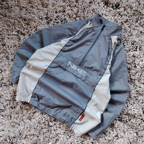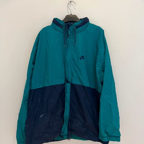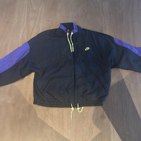 Pent brukt 90s streetwear Nike windbreaker jakke til salgs! God tilstand til å være gammel. Størrelse XL. Lomme på midten. Kan justeres i bunn.