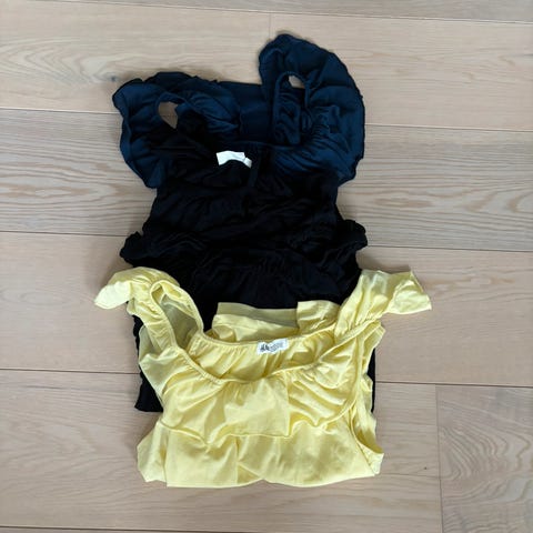 To fine topper i strl 158/164. Den hvite er helt ny og aldri brukt med lapp, og den svarte er kun brukt en gang og fremstår som ny. Sitter utrolig fint på.