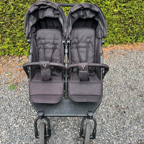 Pent brukt dobbelvogn – solid, trygg og praktisk for to barn.