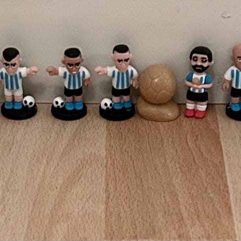 Fotball / Fotballspiller figur. 6 leke figurer i plast.