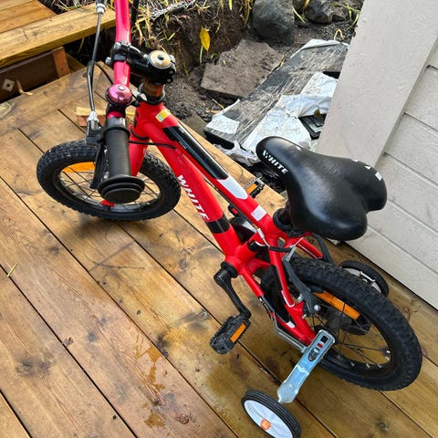 Lett sykkel med 14’’ hjul og 8’’ ramme selges. Passer for kroppshøyde 98-106 cm. Kjempefin for å lære seg å sykle.