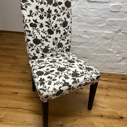 Selger 4 IKEA Henriksdal stoler da vi ikke har bruk for dem. Det følger med 3 ekstra trekk. 4 stoler og 3 ekstra trekk for kr 400,-. Det er kun stoffet som er rundt setet har gått i oppløsning, men disse er lett å bytte. Selve setet er i orden, bare trekket som har gått i oppløsning. Selges samlet. Hentes på Kongsvinger.
