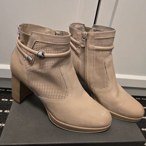 Skolene er brukt kun 1 gang og framstår som nye. Ingen merker eller skader. Ligger i originalemballasje. Skoene har myk såle på innsiden og er derfor veldig gode å gå i. Kostet 999 ved innkjøp, selges til sterkt redusert pris.