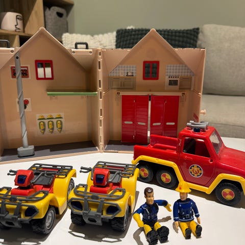Pent brukt brannmann sam leker selges. Pris under bilde.