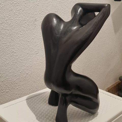Dekorativ skulptur i moderne kunststil. Laget i sort materiale, denne skulpturen passer godt som et stilfullt innslag i hjemmet. Designet viser en sittende figur og kan plasseres på en hylle eller et bord for å tilføre rommet en kunstnerisk touch Sender med Norgespakken.👍.