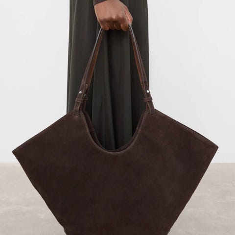 Acne Studios Adrienne Tote i skinn. Fargen er brun / beige. Skinn med tekstur. Den er i god stand med litt skitt på fremsiden som vist på bilde (kan muligens fjernes ved rens). Litt krølling av skinnet på innsiden av skulderstropp (ikke synlig ved bruk) men ellers i topp stand. Serienummer kan ses på siste bildet.