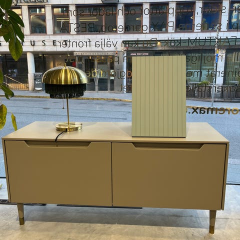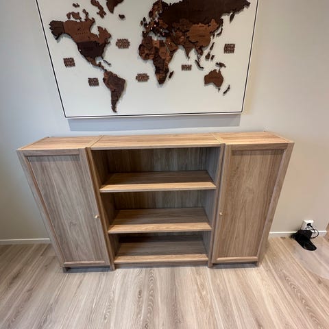 B 74 - D 35 - H 47 cm. Velholdt møbel uten skader. Kraftige skuffer med huntonittbunner.