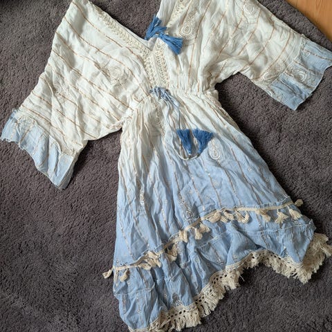 Blondekjole, beige/hudfarget/lys fersken farge, vanskelig å få frem fargen på bildene. Sitter veldig pent på. Kostet 1199,- ny. Tar imot seriøse bud.