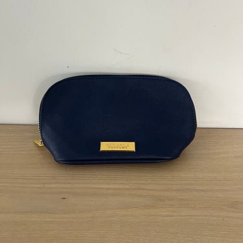 Robust toalettmappe / reiseverske. Grå interiør. Et lite speil følger med. Ingen betydlig bruksmerker.