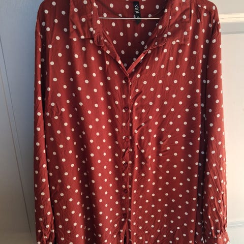 Lekker bluse med blonde øverst og vide flaggermusermer, str Zizzi Small som tilsvarer 42/44 til vanlig. Denne oppleves oversized og passet fint str 46 også. Fargen er mørk brun.