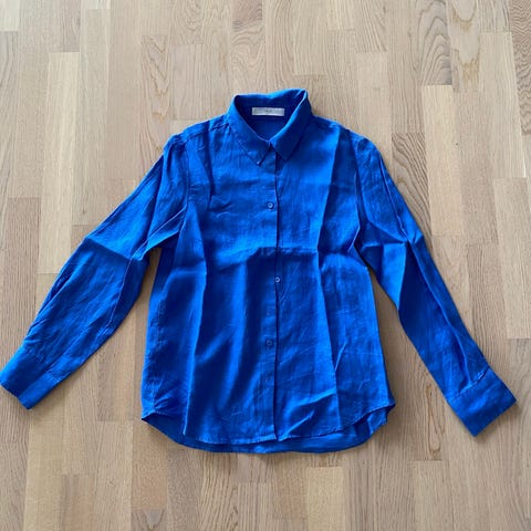 Sommerlig skjorte i linmiks fra Mango. Består kun av naturmaterialer, så den puster godt. Fin som ny etter stryking.