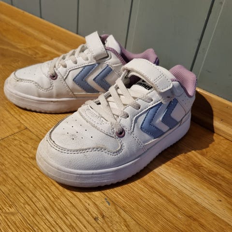 Superkule lærsneakers fra hummel. Høye med borrelås. Ser at de er slitt under og på det hvite, ellers fint brukt.