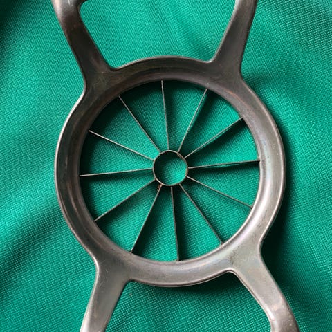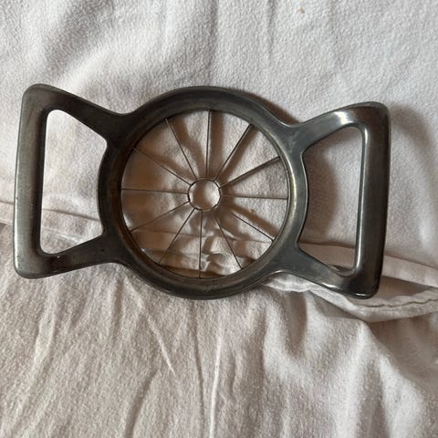 Den er helt i orden men har spor etter bruk og oppvaskmaskin - kan nok bli fin igjen med kyndig behandling