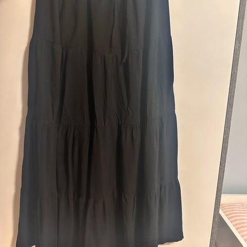 Sommerskjørt fra Bershka. Lite brukt. Glidelås på siden. Har satt det som brukt med noen bruksmerker grunnet noe slitasje på innsiden (se bilde 4), men det går ikke utover funksjon eller synes på utsiden av skjørtet.