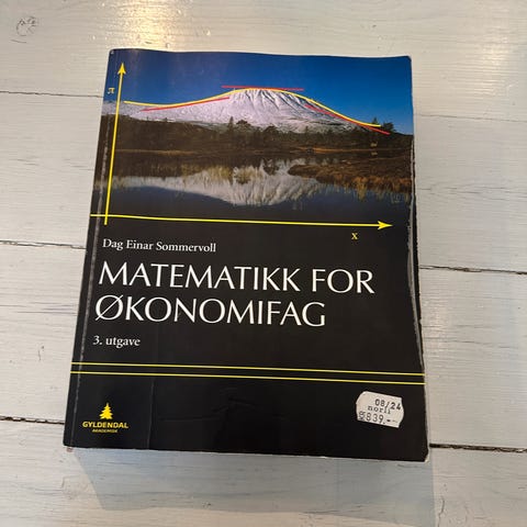 Matematikk for økonomer 3. utgave 2016 av Dag Einar Sommervoll. Har noen bruksmerker, men har ingenting å si for bruken. Ny pris 869,-.
