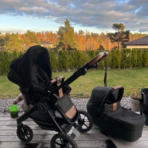 Følger med regntrekk, myggnett osv. Som er i Emmaljunga merket.