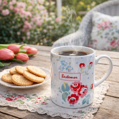 Gave, gift, mor, mamma, mother, mom, kopp, service, flower, blomster, morsdag, vintage.
