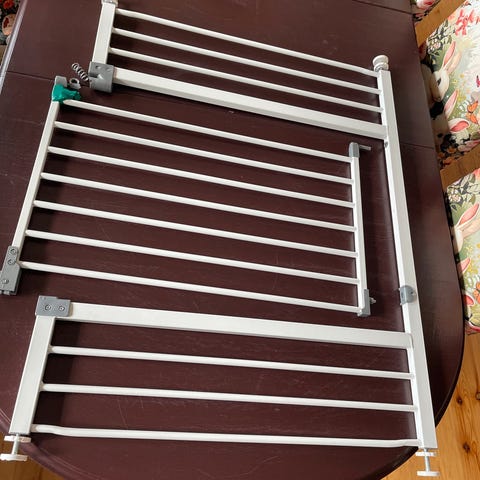 Har ikke somlet meg til å ta bilde men dette er en gammel solid tregrind som foldes opp og ned m et håndgrep, som barn ikke klarer å lure seg over. Den er tydelig brukt, men ikke noen feil eller mangler, of den er ikke "stygt" brukt etter min mening.