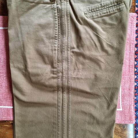 Farge: sjokoladebrun, strl.38" (ca.97 cm liv), tot.lengde 66 cm, innv. benlengde 38 cm.