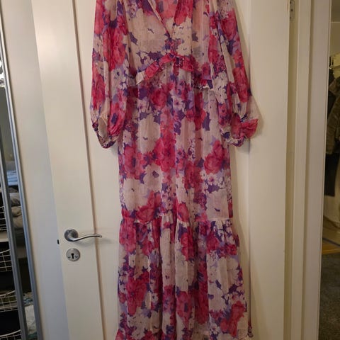 og rød/hvit kappe nederst med offwhite blondekant ca 8cm bredde over kappen