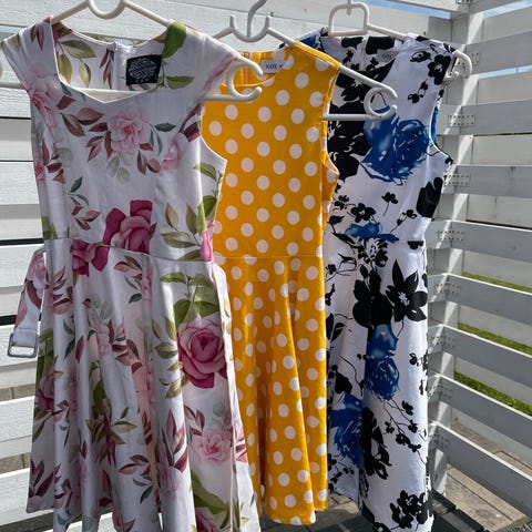 Rosa stripet sommerkjole med krage fra 80-tallet kjøpt i Frankrike. Bomull. Str. 126, 8 år. Velholdt.