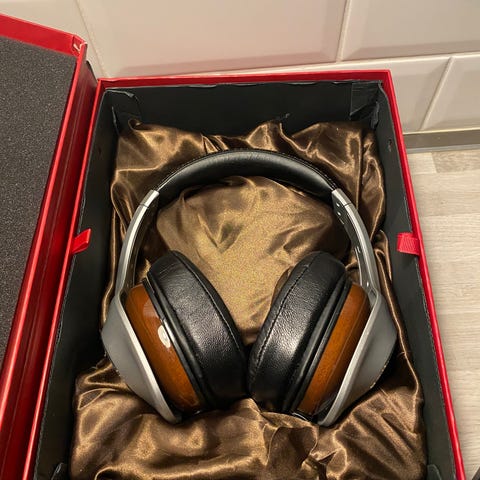 jeg selger min hodetelefon fra Denon - DENON AH-MM400. Kvalitet stativ (Audioquest) får du i prisen. Hodetelefonen ble lite brukt og fungerer som den skal- jeg vil si utmerket. Den ble kjøpt på hifiklubben.no. Jeg har fortsatt boksen + manual.