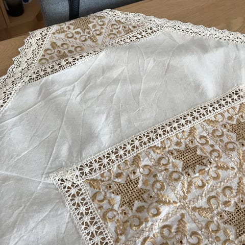 Selger 2 stk pent brukte juleduker i str. 140x250. De er kjøpt på KID og Princess,og kostet 1200,- nye.
