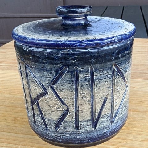 Blå krukke,håndlaget i Norge.ø 11 cm h 10 cm