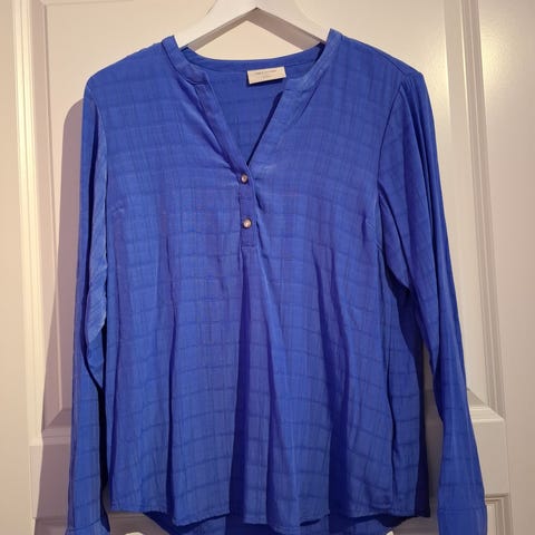 Meget behagelig krøllfri stoff. Brukt 1 dag på ferie. På lappen står det XXL, men faktisk str er 40-42 - for liten for meg i år 😢. Blusen kostet rundt 600kr. Selges for 200kr