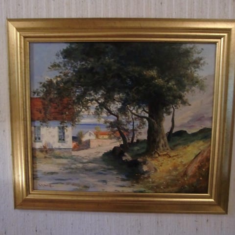 Oljemaleri av Edna Naptad i god stand. "Grip de gyldne øyeblikkene".