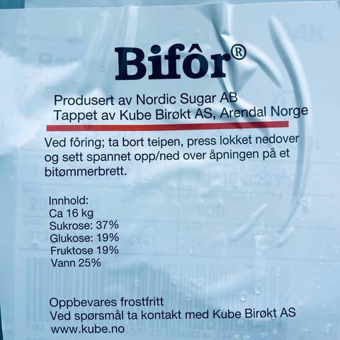Bifolkene leveres i utgangspunktet på 10 rammer, men komplett utstyr og utbygde rammer kan selges med. Jeg ønsker å nedskalere driften noe og vil ha omtrent 10 bifolk til salgs. Bifolkene behandles mot varoa da kubene er yngelfrie i november/desember. Har aldri hatt vintertap.