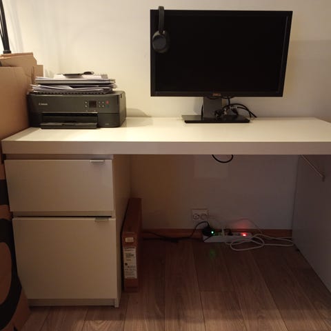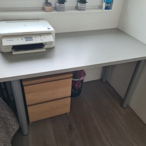 Selger skrivebord, som nytt pga. plassmangel.